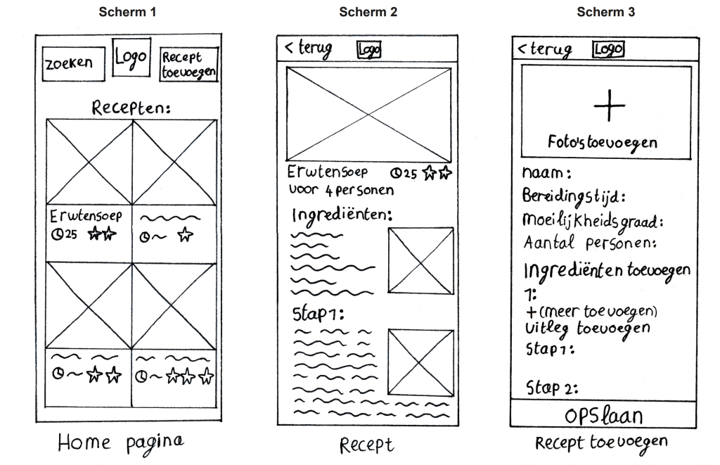 Het ontwerpen van een prototype van deze website heb ik op mij genomen. In de brainstormfase heb ik wireframes (low fidelity prototype) voor een app gemaakt. Later werd dit een website om de gebruiksvriendelijkheid voor ouderen te verhogen.